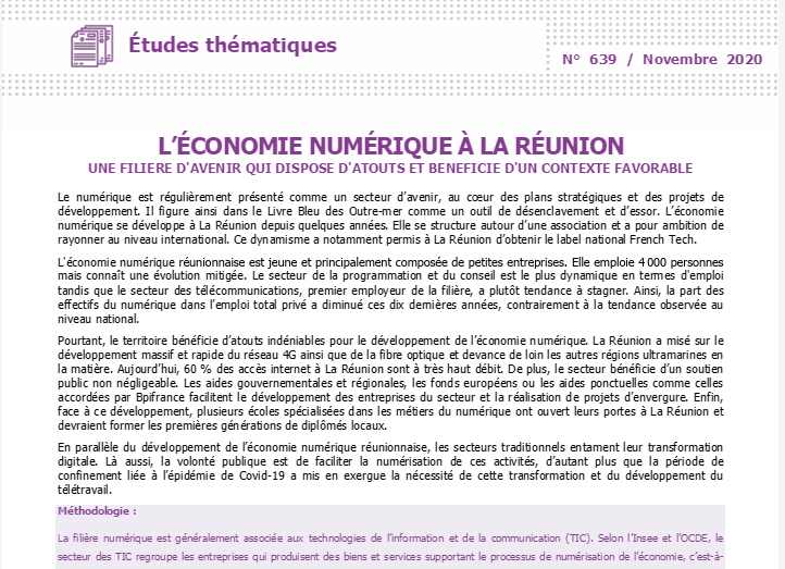 ÉTUDE SUR L’ÉCONOMIE NUMÉRIQUE À LA RÉUNION – IEDOM